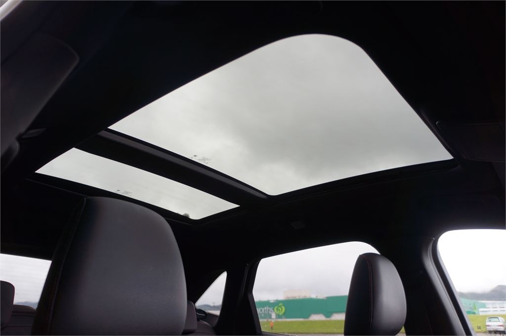 Electric heated seats, climate control, panoramic glass roof with sunroof and tinted windows.