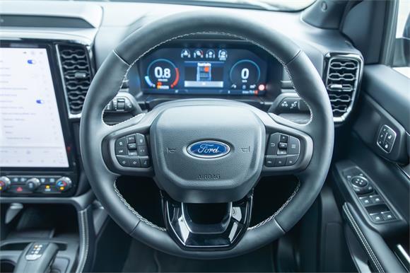 Inside, the cabin sets a new standard for premium everyday driving. Quilted leather seats with heating and ventilation up front, a heated steering wheel, panoramic sunroof, and ambient interior lighting elevate comfort on every journey. A 12-inch SYNC 4 touchscreen takes centre stage, supporting wireless Apple CarPlay, Android Auto, FordPass remote connectivity, and a full digital instrument cluster for a seamless, modern driving experience.