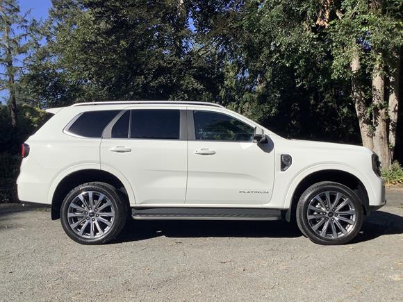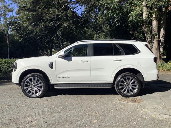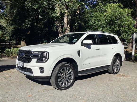 2025 Ford Everest Platinum ”” 3.0 L V6 Diesel, 10-Speed Auto, 7-Seat SUVBold and capable, the 2025 Everest Platinum delivers 184 kW and 600 Nm through a smooth 10-speed auto and full-time 4WD. Inside, enjoy quilted leather, 12.4”³ digital cluster, 12”³ SYNC-4 touchscreen, wireless Apple CarPlay/Android Auto, and a panoramic roof. With smart safety aids, adaptive cruise, 21”³ alloys, and seating for seven, it blends rugged tow-ready strength and refined family comfort.