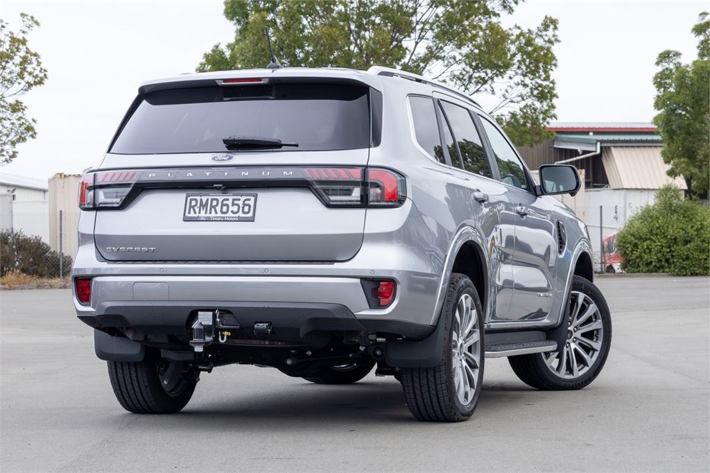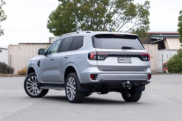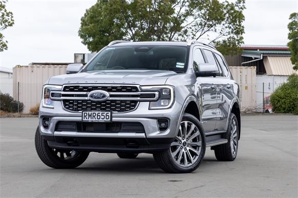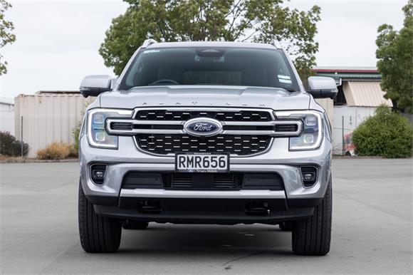 PRE-REGISTERED AND READY TO GO - DRIVE AWAY TODAY!Indulge in luxury, power, and advanced technology with the 2025 Ford Everest Platinum. Powered by the 3.0L V6 turbo diesel engine and paired with a seamless 10-speed automatic transmission, this flagship SUV is built to excel on New Zealands roads and trails. Its 4x4 capability, complemented by a selectable drive modes for any terrain our roads throw at you, and an impressive 3,500kg braked towing capacity ensure its ready for any adventure.