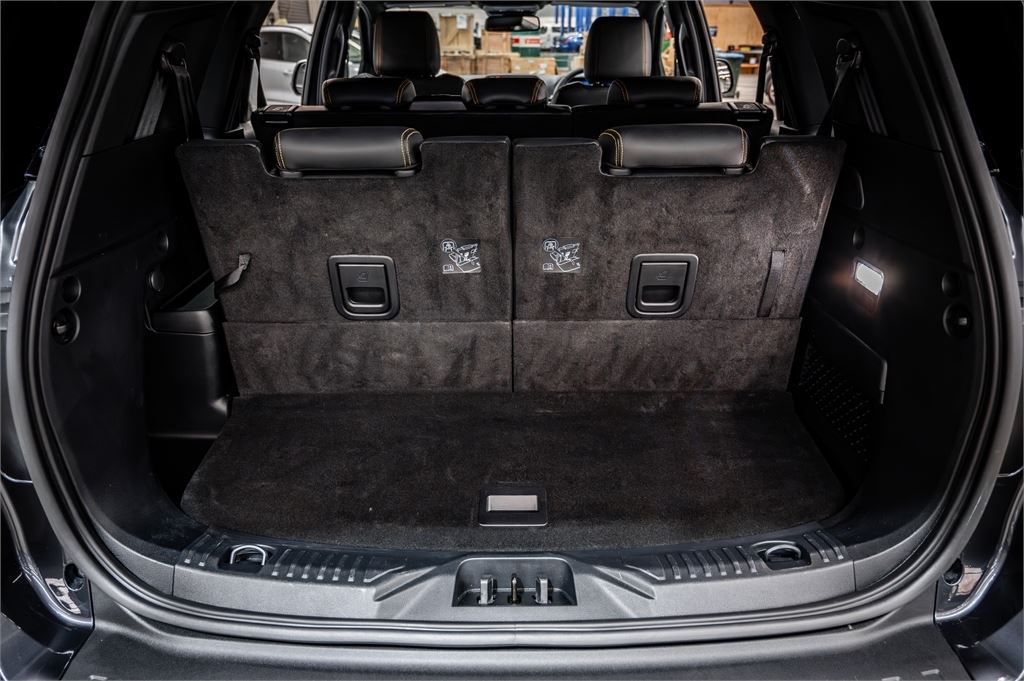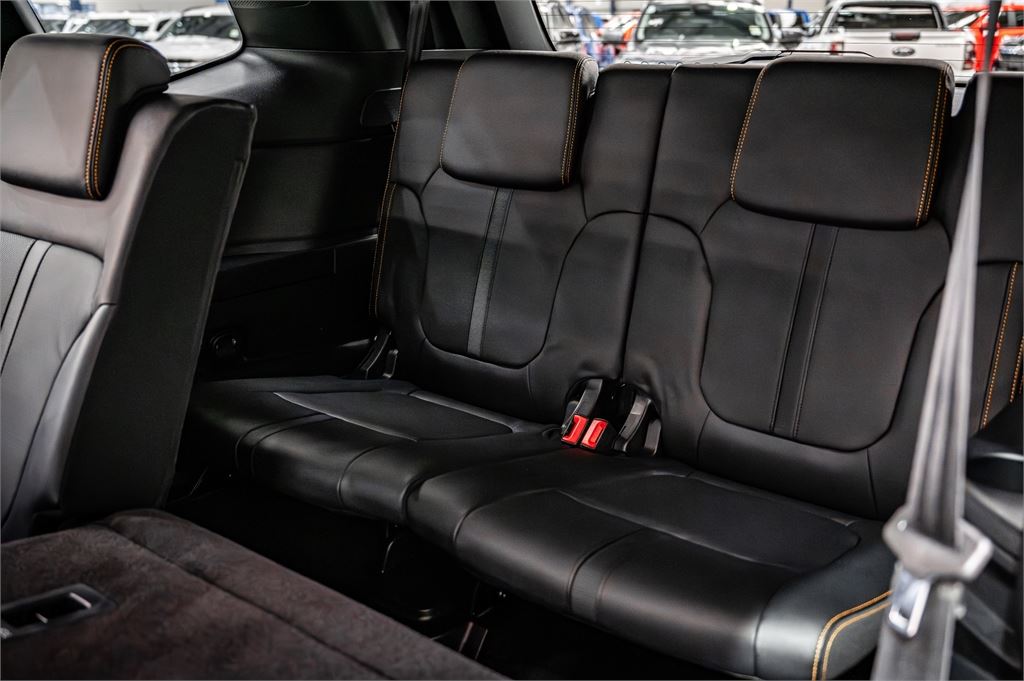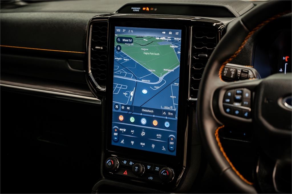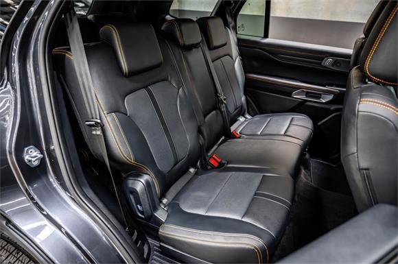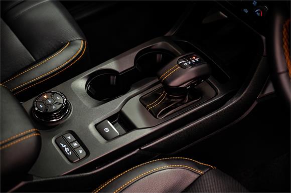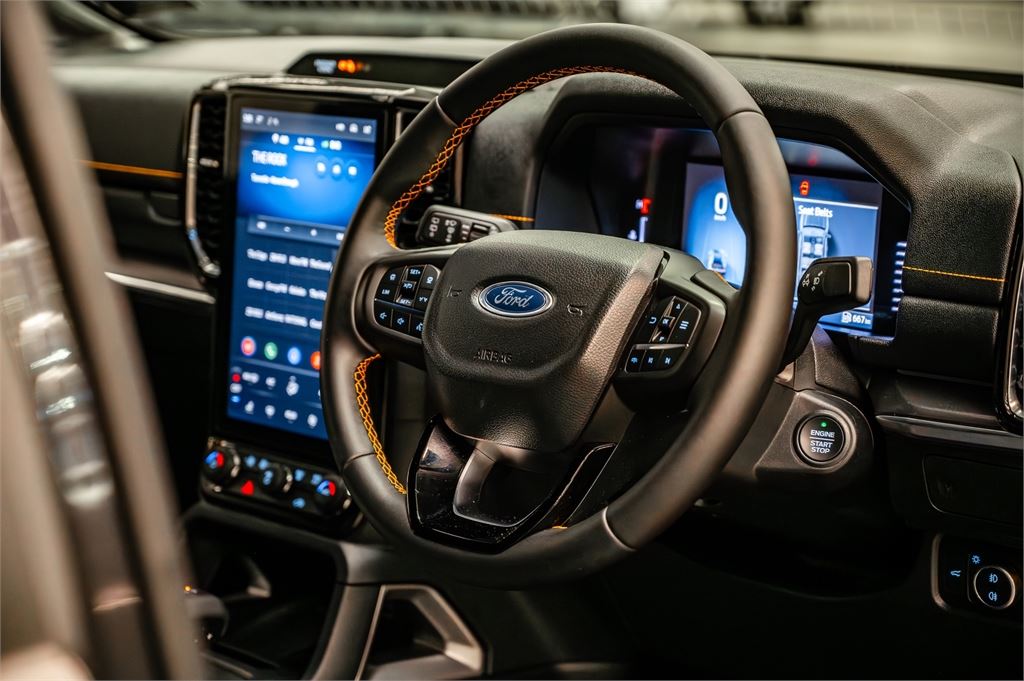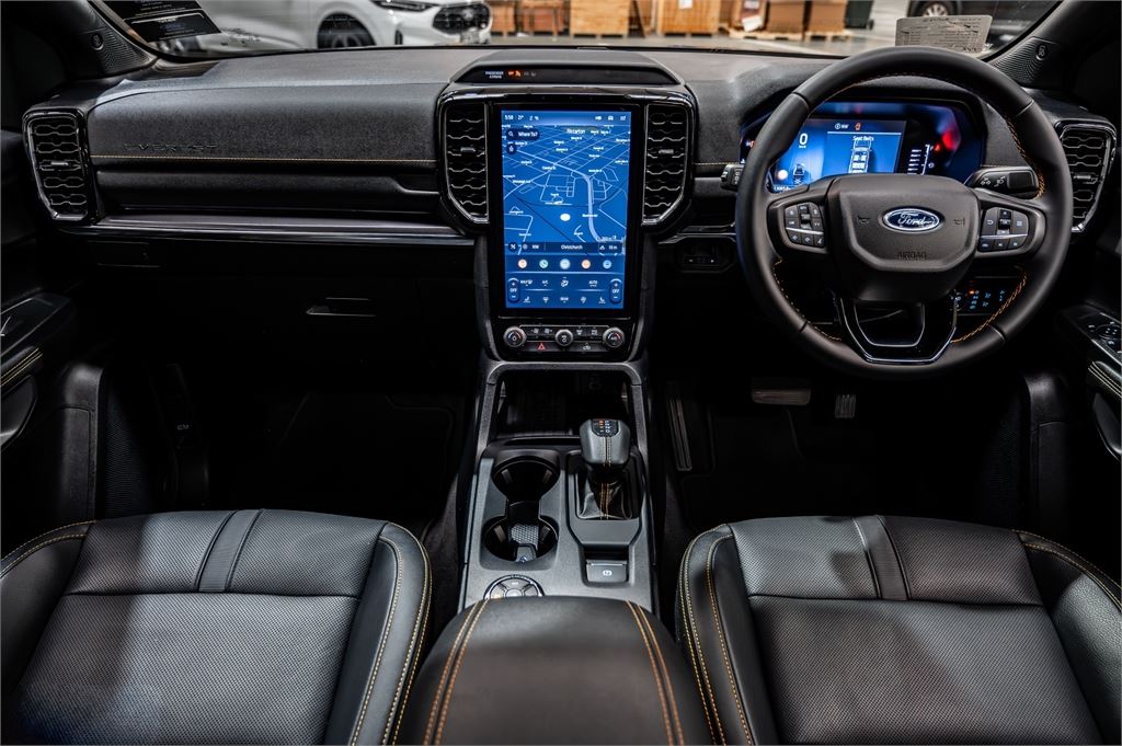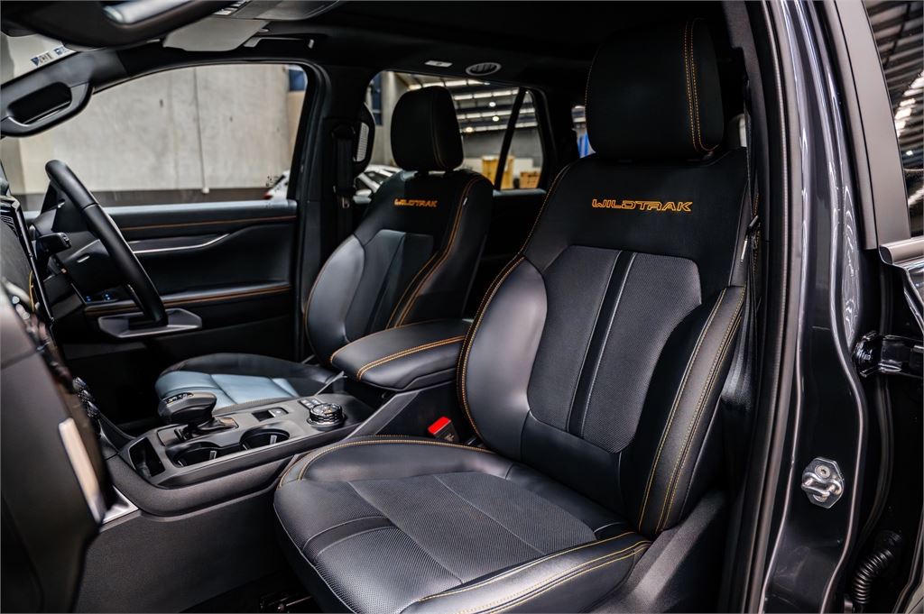 Perforated ebony leather seats with Cyber Orange stitching & Wildtrak logo