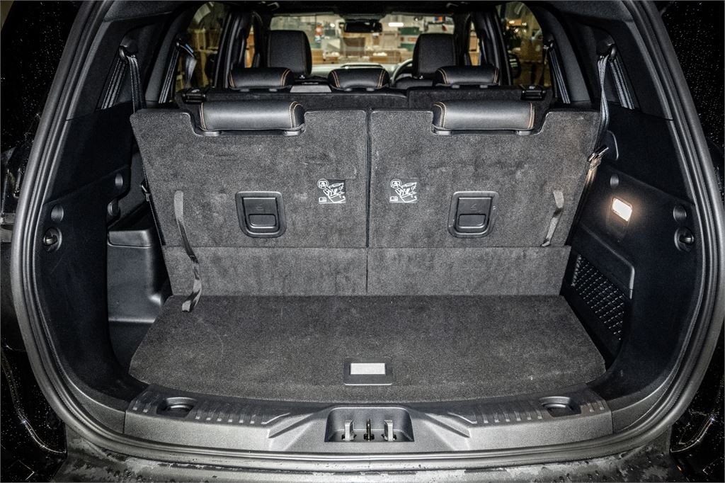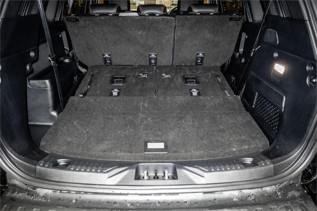 Cyber Orange stitching and Wildtrak logo on perforated ebony leather seats