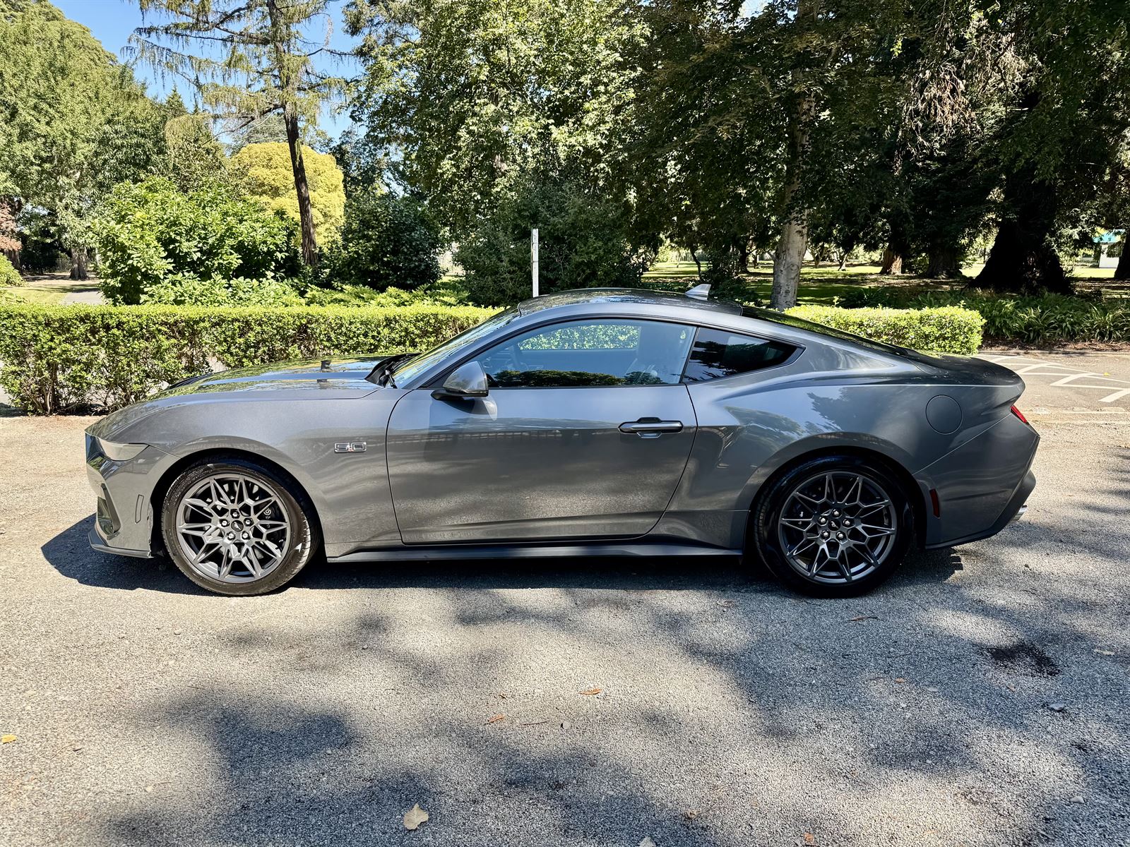 The 2025 Ford Mustang in Charcoal Metallic is the definitive modern muscle car, blending a stealthy, industrial aesthetic with the raw soul of an American icon. This latest S650 generation features a sharpened exterior design, where the deep metallic finish accentuates the aggressive hood vents and the signature tri-bar LED lighting. Powered by the legendary 5.0L Coyote V8 engine, the Mustang delivers an exhilarating rear-wheel-drive experience that remains perfectly composed on twisting Kiwi backroads.Inside, the jet-fighter-inspired cockpit boasts a massive curved digital display and premium materials, offering a sophisticated environment for every mission. It is a professional, high-performance masterpiece that commands respect at every intersection, proving that some legends only get better with age. It is the ultimate statement for the driver who demands presence, power, and timeless style.