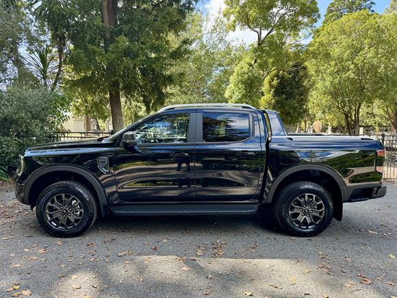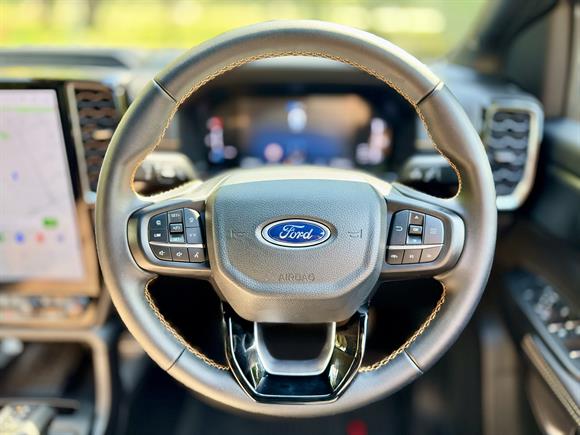 The 2026 Ford Ranger Wildtrak in Shadow Black is the definitive "do-it-all" machine, pairing a menacing, dark aesthetic with the most sought-after powertrain in the country. Driven by the effortless 3.0L V6 turbo-diesel, it delivers a massive 600Nm of torque through a selectable four-wheel-drive system, making light work of the heaviest boat trailers or the steepest South Island passes. The 2026 model continues to lead the pack with its signature mesh grille, grey accents, and functional sailplane, ensuring it looks just as sharp on the job site as it does parked in the city.Inside, the Wildtrak balances its rugged exterior with a tech-heavy, premium cabin featuring the massive 12-inch SYNC 4A touchscreen and signature Cyber Orange stitching throughout. This latest iteration remains the benchmark for versatility, whether you are navigating tight urban streets or heading deep into the back country, the Wildtrak V6 remains remarkably composed, providing a high-performance, "top-spec" experience that refuses to compromise on strength or comfort.