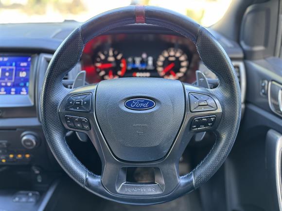 Experience the ultimate performance ute with this 2020 Ford Ranger Raptor, a vehicle specifically engineered by Ford Performance to dominate the rugged New Zealand landscape. At its heart is the formidable 2.0L Bi-Turbo Diesel engine, delivering 157kW of power and a massive 500Nm of torque through a smooth 10-speed automatic transmission. This isn't just a standard Ranger with a body kit; it features a reinforced chassis and a purpose-built suspension system with race-bred FOX Racing Shox that provide 30% more wheel travel to soak up the hardest hits. The aggressive stance is highlighted by flared arches, 33-inch BF Goodrich all-terrain tyres, and that unmistakable block-letter "F-O-R-D" grille that commands respect on any track.Inside, you”™ll find a premium cabin designed for both comfort and control, featuring body-contoured sports seats with suede inserts, magnesium paddle shifters, and the SYNC 3 infotainment system with Apple CarPlay and Android Auto. Whether you're utilizing the Terrain Management System”™s legendary Baja mode for high-speed off-roading or navigating the city with ease, this Raptor offers a level of composure and capability that remains the benchmark for utes in NZ. From its 2.3mm high-strength steel bash plate to its 2,500kg braked towing capacity, this 2020 Ranger Raptor is the complete package for the Kiwi adventurer.