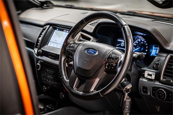 Stand out from the crowd with this 2017 Ford Ranger Wildtrak, finished in striking Pride Orange and enhanced with a Team Hutchinson Ford sport package from new. With low kilometres and an extensive feature list, this Wildtrak offers the perfect balance of rugged capability, comfort, and modern safety technology.