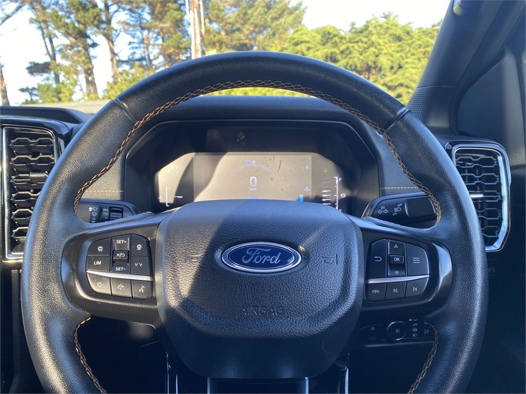 With a 5-star ANCAP safety rating, this Ranger Wildtrak is equipped with a comprehensive suite of safety features including autonomous emergency braking, lane keeping support, blind spot monitoring, traffic sign recognition, reversing collision avoidance, hill hold/launch assist, ESC, traction control, tyre pressure monitoring, multiple airbags including centre airbags, ISOFIX child seat anchors, and knee airbags, giving you confidence on every journey.