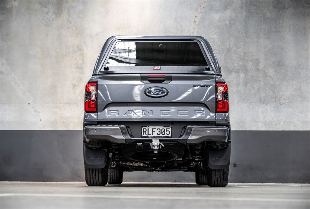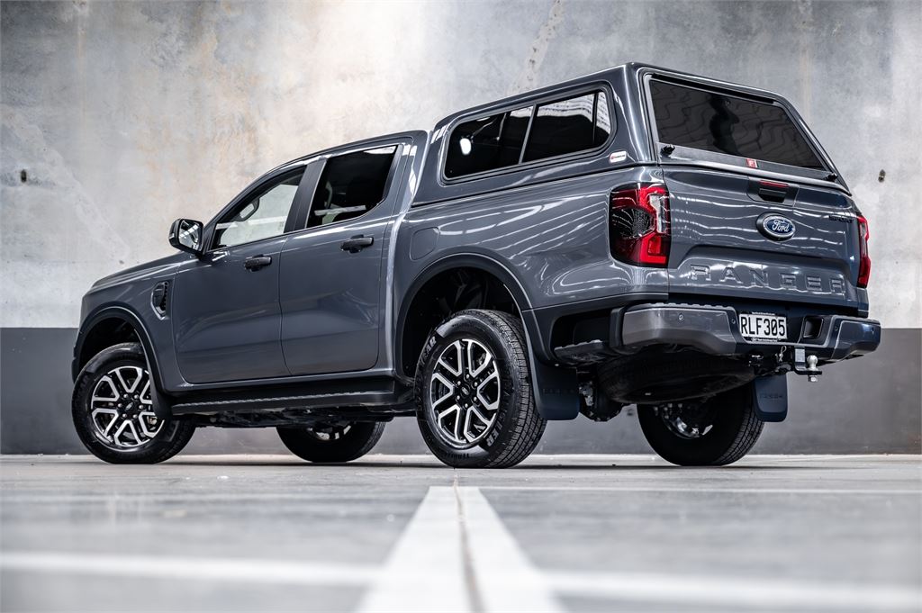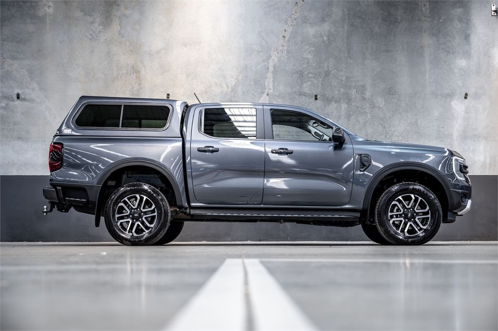 Low-KM 2025 Ford Ranger Sport 4x4 2.0 Bi-Turbo, 10-Speed Auto, Fitted with a canopy.