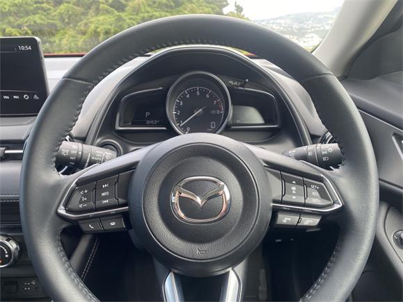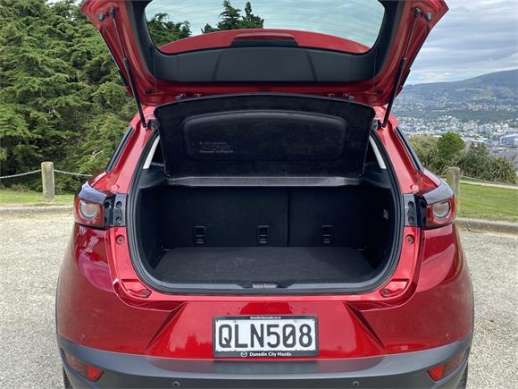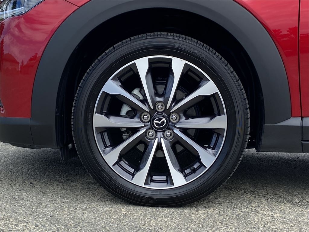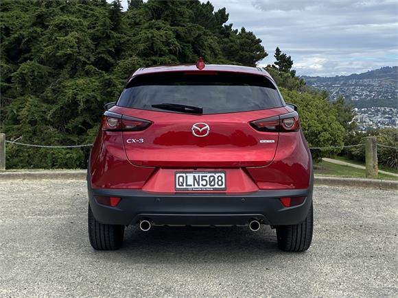This CX-3 has a 5 Star safety rating and is equipped with a full suite of safety features including autonomous emergency braking, adaptive cruise control, lane keeping support, blind spot monitoring, reversing collision avoidance, electronic stability control, active yaw control, multiple airbags throughout the cabin, ISOFIX child seat anchor points, and rear vision camera to help keep you and your passengers safe on every journey.
