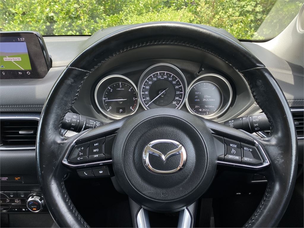This Mazda CX-5 holds a 5-Star Safety Rating and is equipped with a comprehensive suite of safety features including autonomous emergency braking, blind spot monitoring, ABS braking, electronic stability control, traction control, active yaw control, multiple airbags throughout the cabin, ISOFIX child seat anchor points, and reversing camera to help keep you and your passengers protected on every journey.