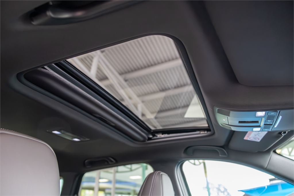 Inside, you're welcomed by a beautifully crafted cabin featuring deep red Nappa leather seats, genuine wood trim, and ambient lighting that creates a warm, sophisticated atmosphere. A power panoramic sunroof enhances the sense of space, while heated front and rear seats and a 10-way power-adjustable driver's seat with memory function ensure comfort for every journey.